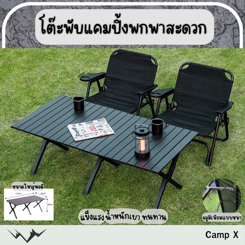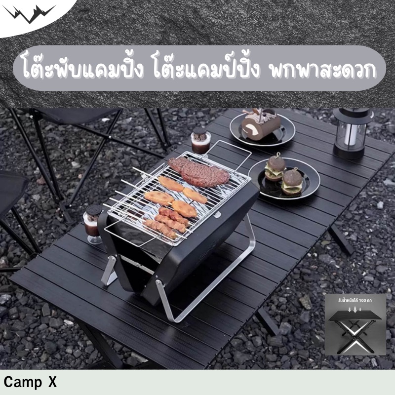 เดิมทีนำเข้าเพื่อโปรเจคเปิดร้านแคมปิ้ง มีจำนวนเกินจึงจำหน่ายราคาพิเศษโดยตรงจากผู้นำเข้า ✅ แม้ไม่มีแบรนด์ แต่คุณภาพเทียบเท่าโต๊ะจากแบรนด์ดังราคาหลายพันบาท รองรับน้ำหนักได้ถึง 100 กก. แผ่นโต๊ะม้วนเก็บ พับเล็ก พกพาง่าย น้ำหนักประมาณ 5.5 กก.