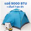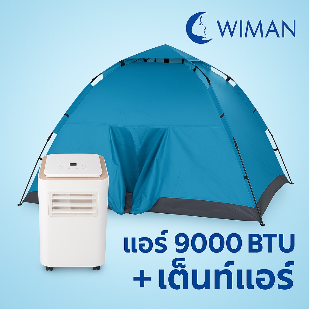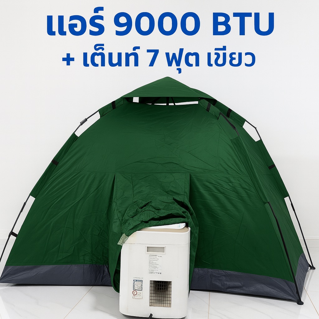 ชุดคุ้มรวมแอร์เคลื่อนที่ 9000 BTU กับเต็นท์แอร์ออโต้ 7 ฟุต — กางง่าย ~10 วินาที เย็นไว ~5 นาที เหมาะทั้งในบ้าน/คอนโด และแคมป์ปิ้ง • กันน้ำ 1500 mm • มอก.1529-2561 • รับประกันสินค้า 1 ปี / คอมเพรสเซอร์ 5 ปี