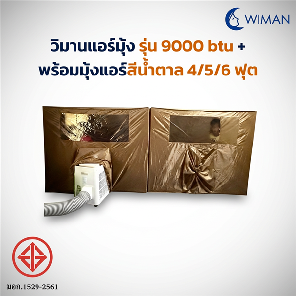 ชุดแอร์เคลื่อนที่ WIMAN 3000 BTU + มุ้งแอร์สีน้ำตาล (4/5/6 ฟุต) ❄️ เย็นเร็ว ประหยัดไฟ 300–360W 🔇 เงียบ ~38 dB นอนสบาย 🌟 โทนสุภาพ Brown-Gold เหมาะกับพระ/ผู้ใหญ่ 📏 มีให้เลือก 3 ขนาด: 4 / 5 / 6 ฟุต ✅ มาตรฐาน มอก.1529-2561 + รับประกัน 5 ปี