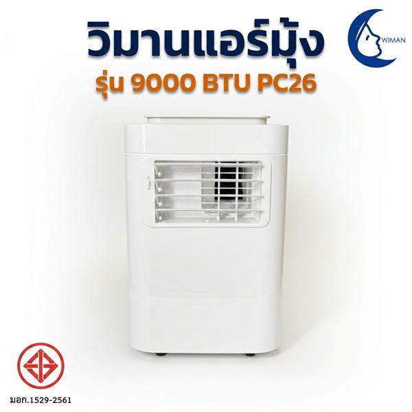 แอร์เคลื่อนที่ วิมานแอร์ 3000 BTU รุ่น PC9-3000 ❄️ แอร์แท้ ไม่ใช่พัดลมไอน้ำ เสียบปลั๊กเย็นทันที ไม่ต้องติดตั้ง เสียงเบาเพียง ~38 dB ประหยัดไฟเฉลี่ย 1.3 บาท/ชม. มาตรฐาน มอก.1529-2561 เหมาะกับห้องเล็ก มุ้ง และเต็นท์แคมป์ปิ้ง คอมเพรสเซอร์รับประกัน 5 ปี /