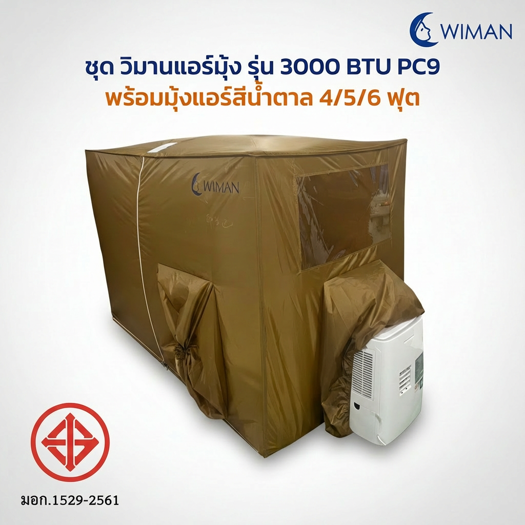 WIMAN 3000 BTU + มุ้งแอร์สีน้ำตาล | เย็นจัด ประหยัดไฟ เงียบ มอก.1529-2561